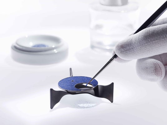 アベンチュリン・エナメルの技法は17世紀初頭まで遡ります。銅の細片が加わるガラスがまさに星空の印象をもたらすこの技法は、当時から絶えず改良されてきました。ブレゲはこの時計のためにグラン・フー エナメルのような作業を選びました。つまり、ガラスを粉末にするのです。最終的な組成には繊細にサイズを選ぶ必要があります。完璧な結果を生むためには、アベンチュリンの粉末が伝統的なエナメルの粉末よりもわずかに大きな粒子を持っていなくてはなりません。次にそれらを一緒にして摂氏800度以上の炉に入れ、この文字盤を最低でも5回連続して焼きます。1回ごとの焼成は極めて繊細です。時間が長すぎても、温度が高すぎても、満足のゆくような結果がまったく得られません。