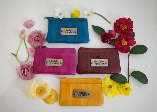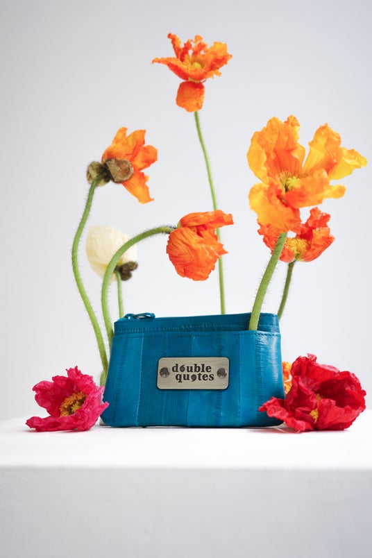 double quotes(ダブルクォーツ)は、韓国発のエシカルレザーブランド。韓国産のイールスキン(うなぎ革)を贅沢に使用し、環境に配慮したサステナブルなモノづくりを大切にしています。唯一無二の色彩や風合い、遊び心あふれるデザインで、毎日に彩りと特別感を届けるアイテムを提案しています。