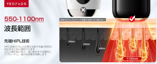 特に、長波長域を活かした高い浸透力により、男性の太い毛やヒゲにも効果的。
