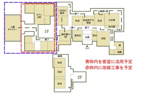 「旧相馬家住宅ホテル計画(仮称)」においては、建物のうちカフェエリアを中心とした区画を対象に、重要文化財としての価値を守りながら3つの客室に改修を行う予定です。