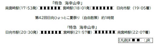 ・ 日向市駅到着後は、日向ひょっとこ夏祭りをお楽しみください!