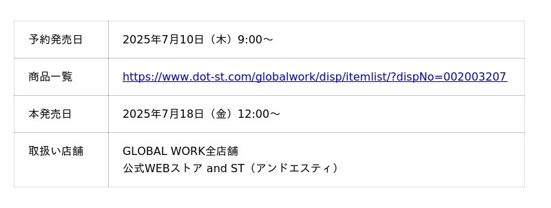 株式会社アダストリア(本部:東京都渋谷区渋谷2-21-1、代表取締役社長:木村 治)が展開するGLOBAL WORK(グローバルワーク)は、誕生から85周年を迎える大人気アニメシリーズ「トムとジェリー」のデザインをプリントした半袖Tシャツなどのキッズ向けアイテムコレクションを新発売いたします。今回のコレクションでは、アメリカンダイナーカフェをイメージしたアートを用いた刺繍キャップやハンドタオル、チャーム、巾着などの雑貨も合わせた全6型を2025年7月10日(木)より、公式WEBストア and ST(アンドエスティ)にて予約販売を開始いたします。