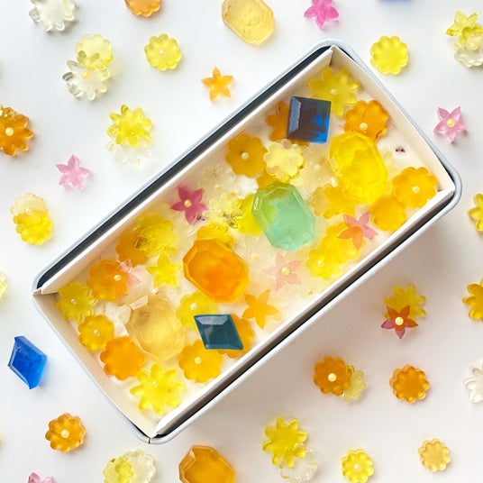 おそろいのデザインの琥珀糖ボックス「こうぶつのカケラ~summer blossom~」も好評販売中!