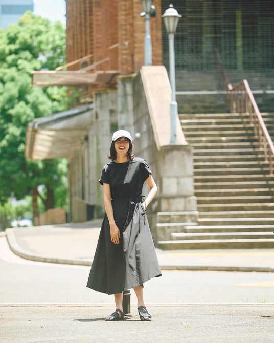 ITEM05 別注 ストレッチナイロン ウエスト紐付ワンピース ¥22,000(tax in)