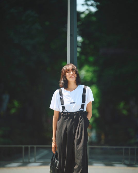 主流のオーバーサイズではなく見頃は程よいゆとりで肩は少しタイトにしてスッキリした印象に。