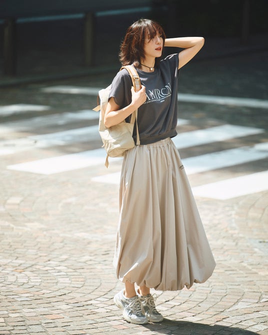スカートはトレンド要素を取り入れた、ボリューム感のあるバルーンスカート。