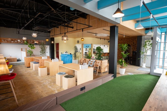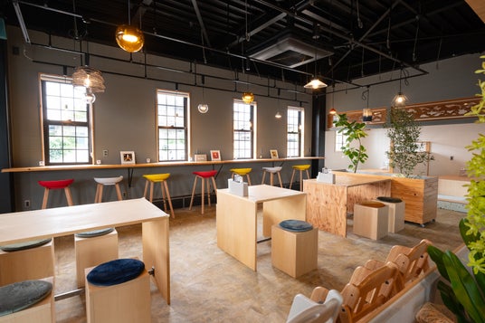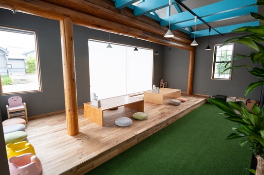 店内は木に囲まれたデザインで、靴を脱いでくつろげる座敷エリアとベビーカーでも通りやすいゆとりある動線を確保。大工ならではの技術で、子連れ家族が安心して過ごせる空間を実現しました。