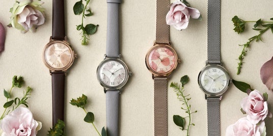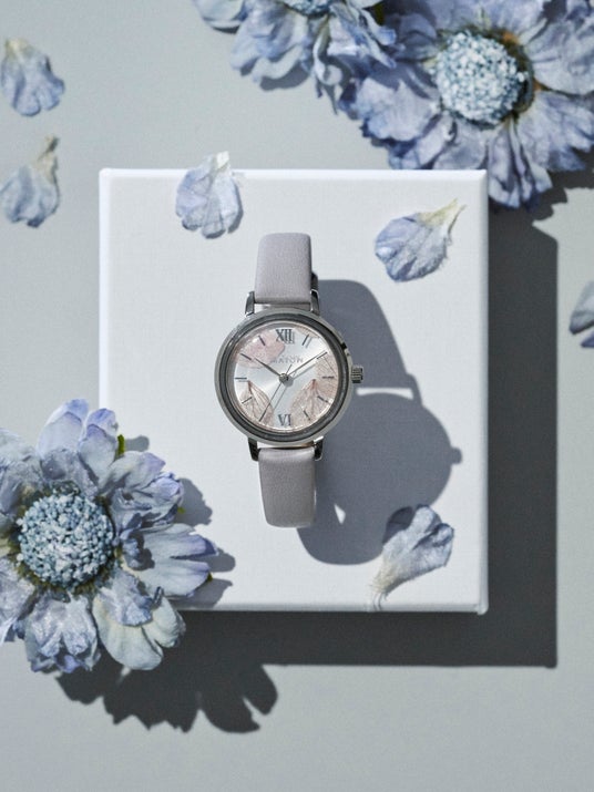 「ブーケット」は、日本の四季とその土地に咲く花の記憶を、腕元にそっとまとうようにデザインされた腕時計です。文字盤には本物の花びらを一枚ずつ丁寧に閉じ込めており、世界にひとつとして同じもののない、一点ものの特別な時計です。ラインナップは、山桜(京都)、紅葉(石川)、鈴蘭(長野)、花霞(奈良)の4モデル。それぞれが季節の移ろいや土地の情景を繊細な色彩で表現し、静かに流れる時間を美しく彩ります。