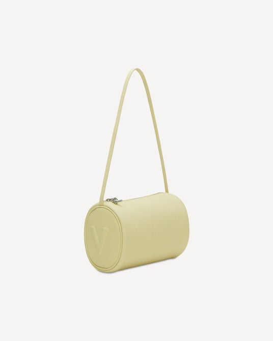 [10周年記念バッグ] Bivi ¥33,000(税込)コンパクトなバレル型バッグの「Bivi(ビビ)」。立体のシルエットを打ち出したクリーンなデザインで、側面にはブランドを象徴する“V”をポイントに、ジッパーの引き手にはノットの金具をあしらいました。そのままストレートにお使いいただくのはもちろん、華奢なショルダーにチャームをつけて強めのアティテュードを演出するのもオススメ。ブランド10周年のタイミングにふさわしい、ファッションのユーモアを謳うアイテムです。