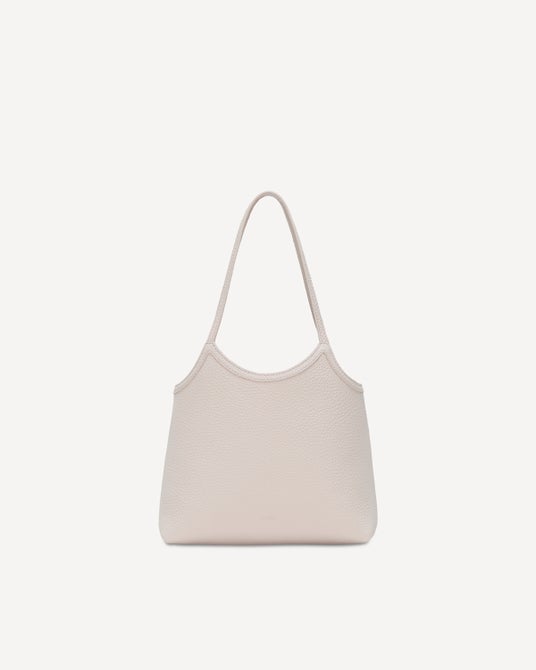 [10周年記念バッグ] Loop Mini Mini ¥33,000(税込)クラシカルな手提げバッグをベースにした「Loop Mini Mini(ループミニミニ)」。軽くて物を出し入れしやすいシンプルな造りで、内側にはポケットつき。付属のストラップをつければショルダーバッグとしてもお使いいただけます。無駄のない静謐なビジュアルが特徴ですが、時にはチャームを重ね付けすることでミスマッチを狙うのもおしゃれ。バッグをキャンバスに、+αで個性を打ち出すことができます。