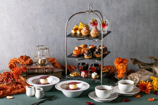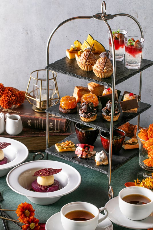かぼちゃ、栗、りんご、洋梨…と秋に恋しくなる食材を、やさしく、上品に 仕立てたアフタヌーンティー。高層階の静けさに包まれて、深まる季節を感じながら過ごす穏やかな午後に寄り添います。