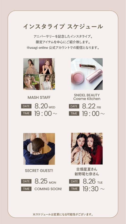 スペシャルゲストとともに、USAGI ONLINE 限定アイテムなどをご紹介いたします。