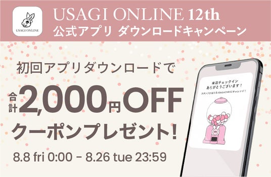 期間中、USAGI ONLINE公式アプリをダウンロードいただくと、合計2,000円OFFクーポンをプレゼント!