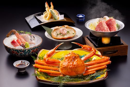 山中温泉のメインストリート「ゆげ街道」沿いに佇む加賀モダンな湯宿、かがり吉祥亭(石川県加賀市 総支配人:村井博)は、2025年10月から来年3月末まで、夕食にズワイガニを贅沢にお召し上がりいただく「ズワイ蟹会席 彩」付きの宿泊プランをご用意いたします。