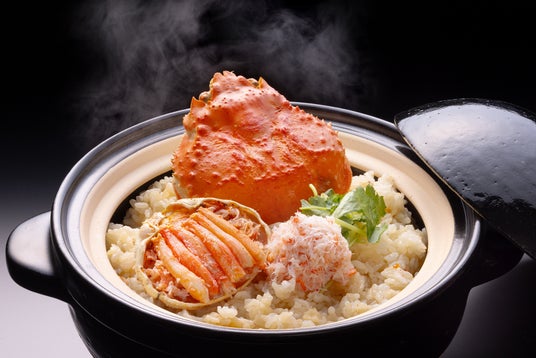 さらに追加料金でコースのごはんを10月は「松茸と大黒しめじの土鍋ごはん」、11月からは雄のズワイ蟹と雌の香箱蟹の「夫婦蟹の土鍋ごはん」に変更することも可能です。