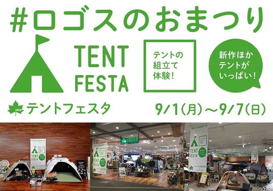 さらに、全国のロゴスショップでは同期間中、キャンプの最重要アイテムであるテントの組立て体験などを通じて、キャンプの準備と練習ができるイベント「テントフェスタ」を実施いたします。