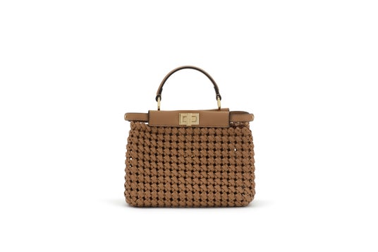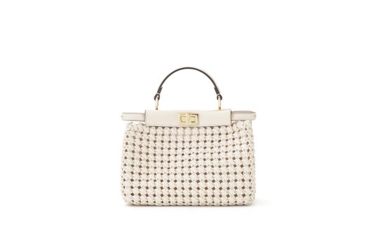 フェンディの比類ない卓越性が余すところなく披露されているインターレースのワークマンシップも健在です。緩やかな波状のグラデーションが目を引くウェーブインターレースは、穴の開けられたレザーパネルに職人が 手作業で数メートルにも及ぶレザーストリップを織り込み、美しいパターンを作り上げます。また、ノッテッドインターレースのワークマンシップが形になるまで、手間暇を惜しまず、数時間かけて丁寧かつ緻密な作業を積み重ねることで、繊細なシースルー効果を生み出します。