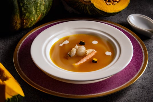 中国料理 燦宮 秋季限定ランチコース < 椿花 CHINFA > ふかひれと蟹肉の金瓜ポタージュ
