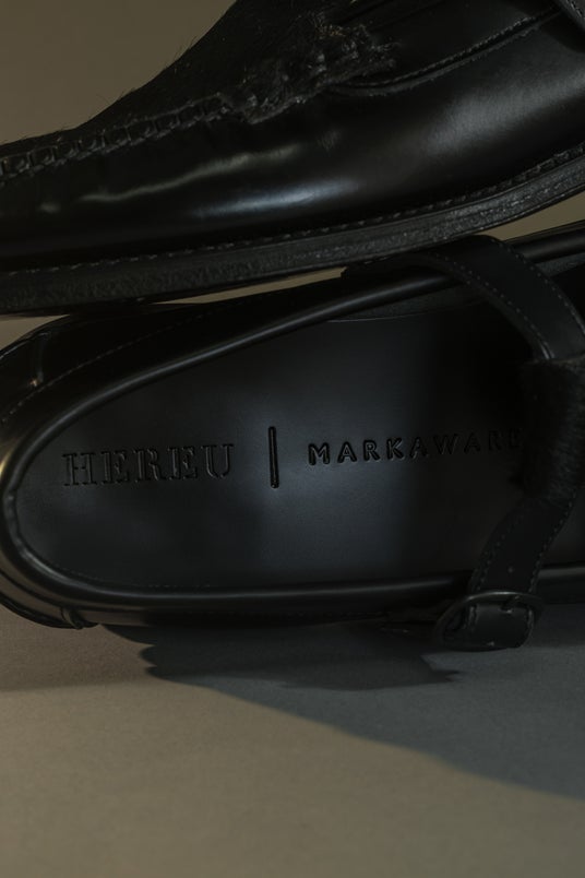 HEREUの持つ伝統的かつモダンなデザインとMARKAWAREデザイナー石川氏のハイエンドな感性が生み出すオールブラックの本アイテムは、時には存在感のある主役、時には確かな安心感をもたらす名脇役として、幅広いスタイルを足元から引き立てる1足です。