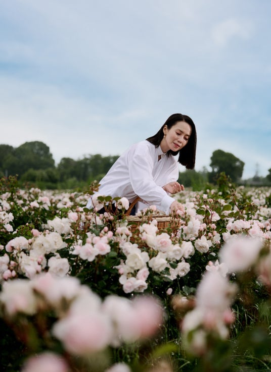 「今回初めてディオール ガーデンを訪れ、グランヴィル ローズが咲き誇る美しい光景と、環境への配慮がなされていることに感銘を受けました。日頃愛用しているプレステージ製品の源泉がここにあることを考えると、今まで以上にその魅力に引き込まれます。バラの専門家の方々が、成分を最大限に抽出するために最適な時期と時間を見極め、一輪一輪手摘みで収穫されているというお話にも、自然への深い愛情とディオールの知性が凝縮されていると感じました。再生農業によってサステナブルに栽培された特別なローズが、ディオールの科学力によって、プレステージならではのこだわり抜かれた成分へと昇華されているのですね。忙しい時こそ、スキンケアの時間を癒やしに変えて、丁寧なケアを心がけています。特に、睡眠時間が十分に取れないような慌ただしい撮影の際にはプレステージのアイテムを取り入れるようにしています」