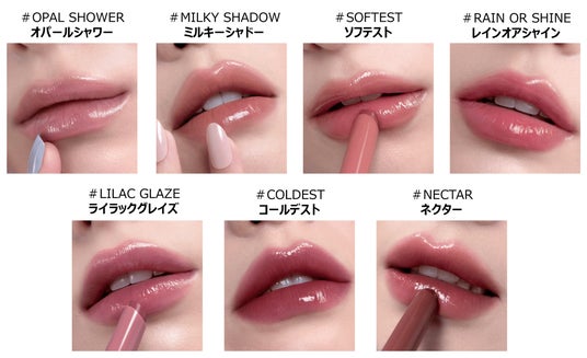 ひと塗りでふわっとやさしく見たまま発色。濃くなりすぎず、ぼかしやすい。やわらかい印象の、ふわっふわグラデリップへ。