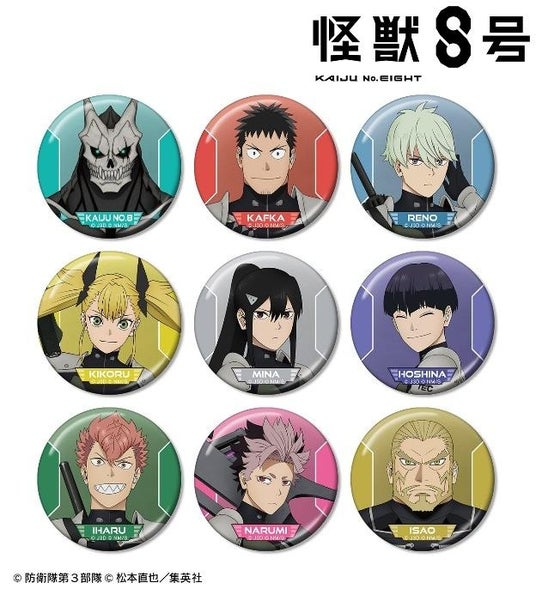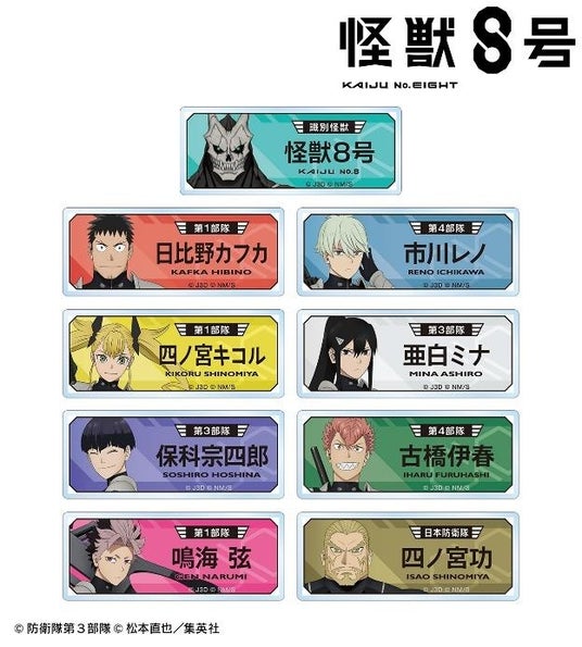 アニメ『怪獣8号』のトレーディングアクリルネームプレート vol.2とトレーディングメタリック缶バッジなどの受注を開始!!アニメ・漫画のオリジナルグッズを販売する「AMNIBUS」にて