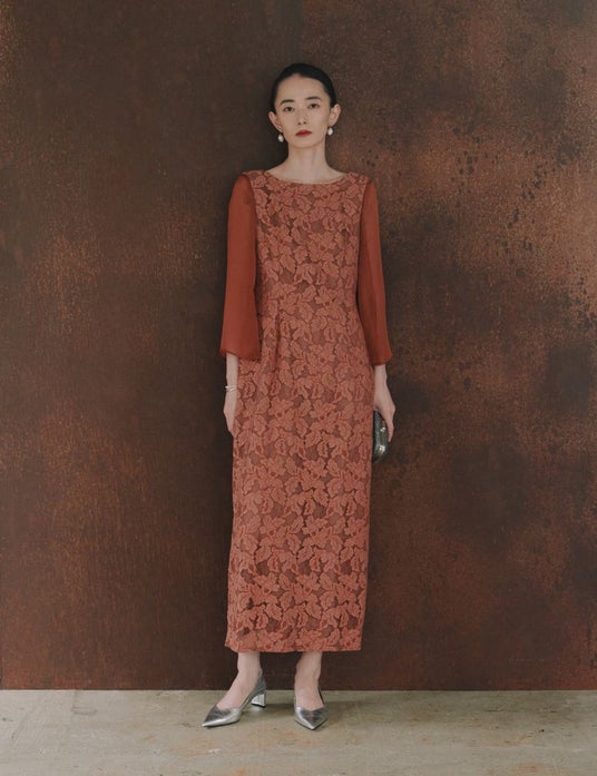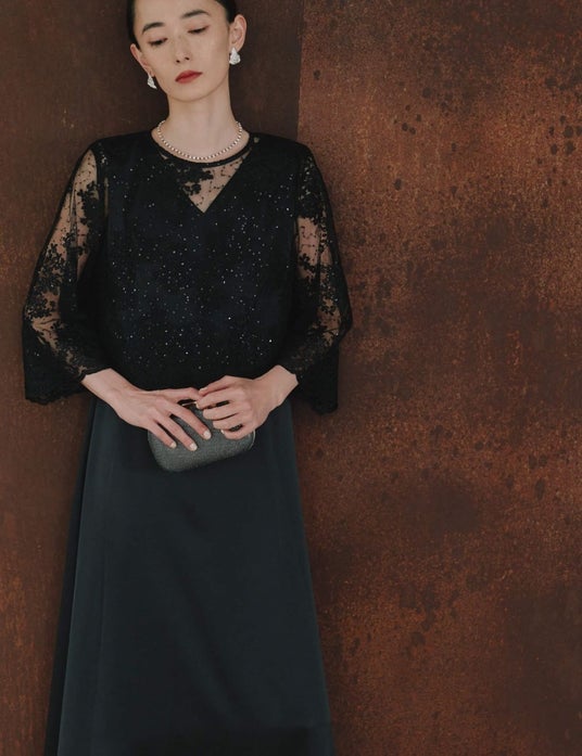 シャイニーレースレイヤードドレス ¥49,500(税込) No.101117