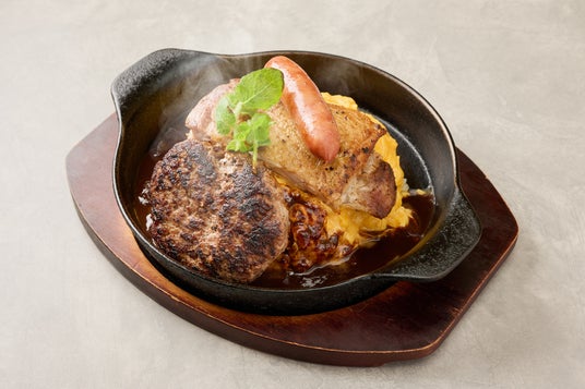 肉盛りオムライスチキンステーキ&ソーセージ&ハンバーグ