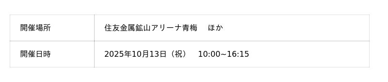 スポーツDAY 青梅 2025 10月13日(祝)10:00~16:15 住友金属鉱山アリーナ青梅などで開催します。スポーツをとことん楽しめる1日となっています。