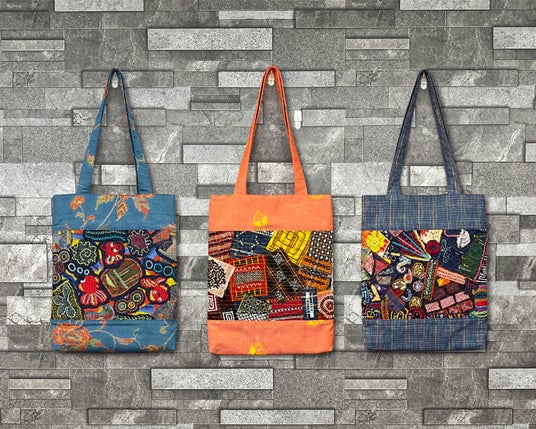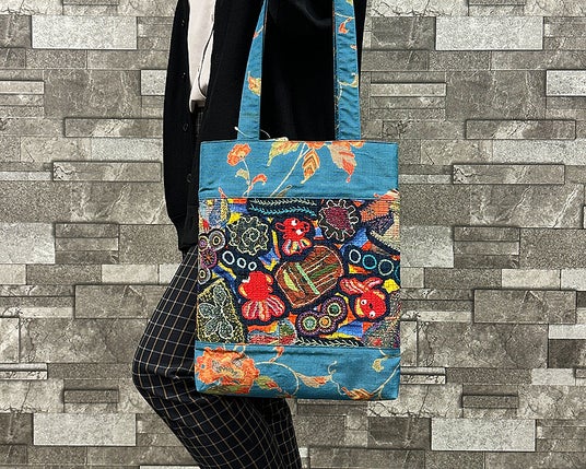 新作のコラージュバッグ:古着物の断片を融合させた、持続可能なデザイン