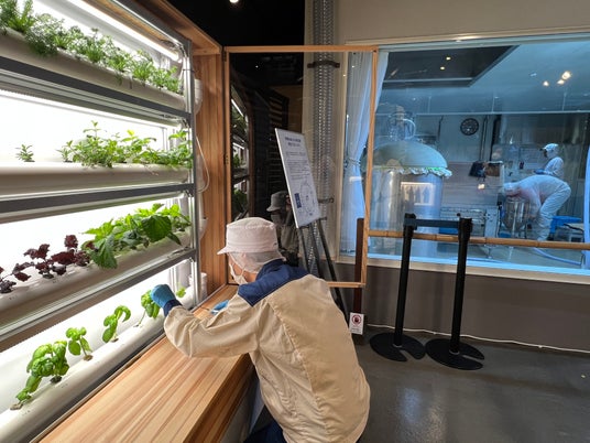 白鶴酒造は2025年4月から、白鶴酒造資料館内にあるマイクロブルワリー「HAKUTSURU SAKE CRAFT」の室内で発生したCO2を活用して植物を栽培する実証実験プロジェクトに取り組んでいます。今回は、そこで育ったハーブをこども店長に収穫してもらい、料理に使用していただきます。