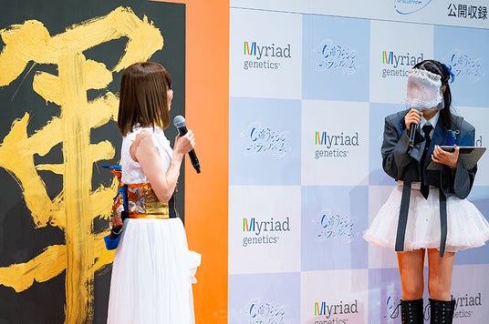 そして、パフォーマンスを間近で見ていた七海さんは、書を完成させた真澪さんに「本当に感動しました!」と大きな拍手を送りました。真澪さんは「七海さんの想いをしっかり受け止めて、一人でも多くの人に届くように、心を込めて精一杯書かせていただきました。これからも書を通してHBOCの啓発活動を応援します」と話しました。