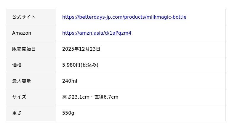 milkmagic「冷却ボトル」は、高品質なベビーテック商品の認定を行う「BabyTech(R) Awards 2025-26」認定商品に選出されており、2026年1月に各部門の大賞・優秀賞の発表が予定されています。