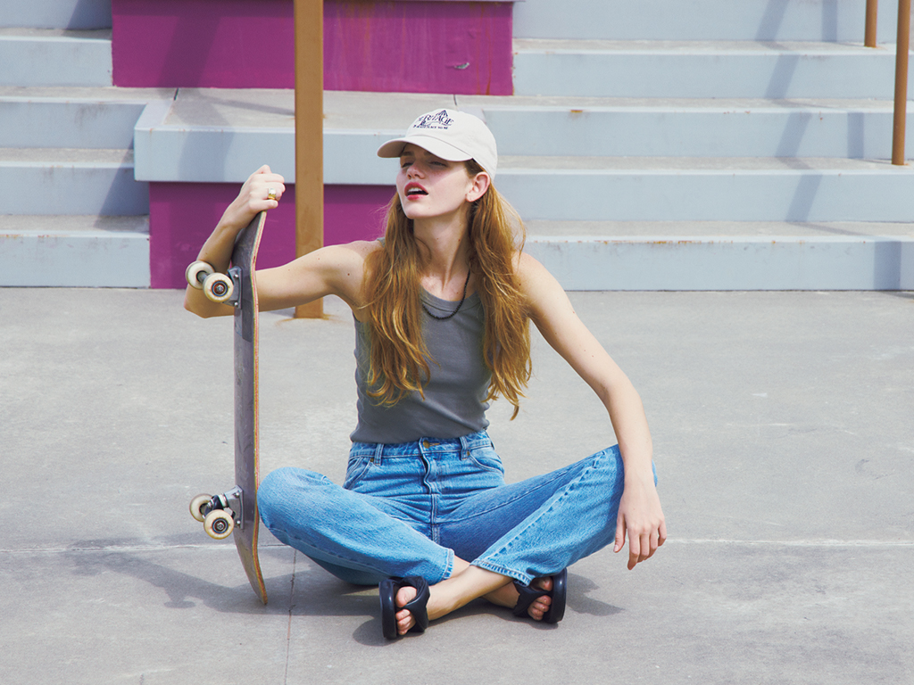 タンクトップ 6,600円/ànuke(ànuke 新宿LUMINE2店) デニムパンツ 18,700円/ローラス(ジャック・オブ・オール・トレーズ プレスルーム) キャップ 7,920円/Oblada(シンチ) ネックレス 42,900円/ete リング 22,000円/ココシュニック オンキッチュ(ココシュニック) サンダル 16,500円/MANOF