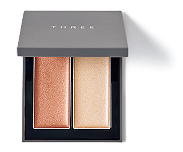 シマリング グロー デュオ R 01 4,950円/THREE さまざまなパールの効果で、生命感のあるツヤを実現。ナチュラルな血色になりすますニュートラルブラウン。右はハイライトカラー。