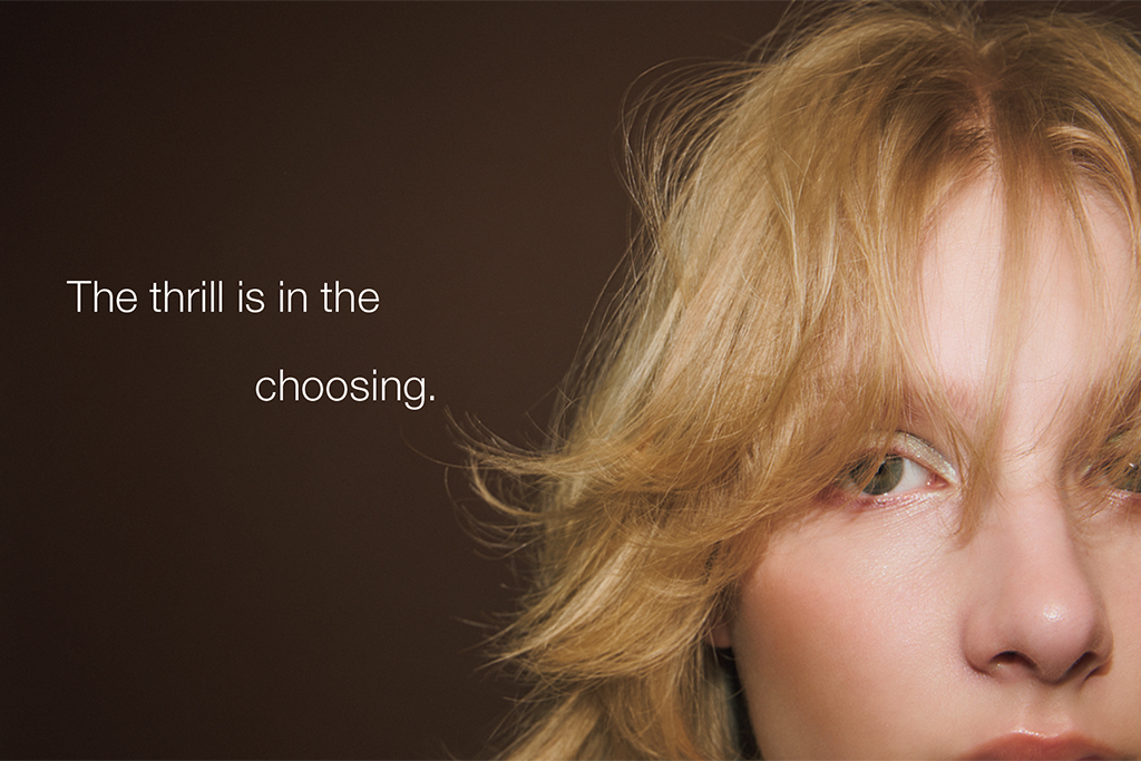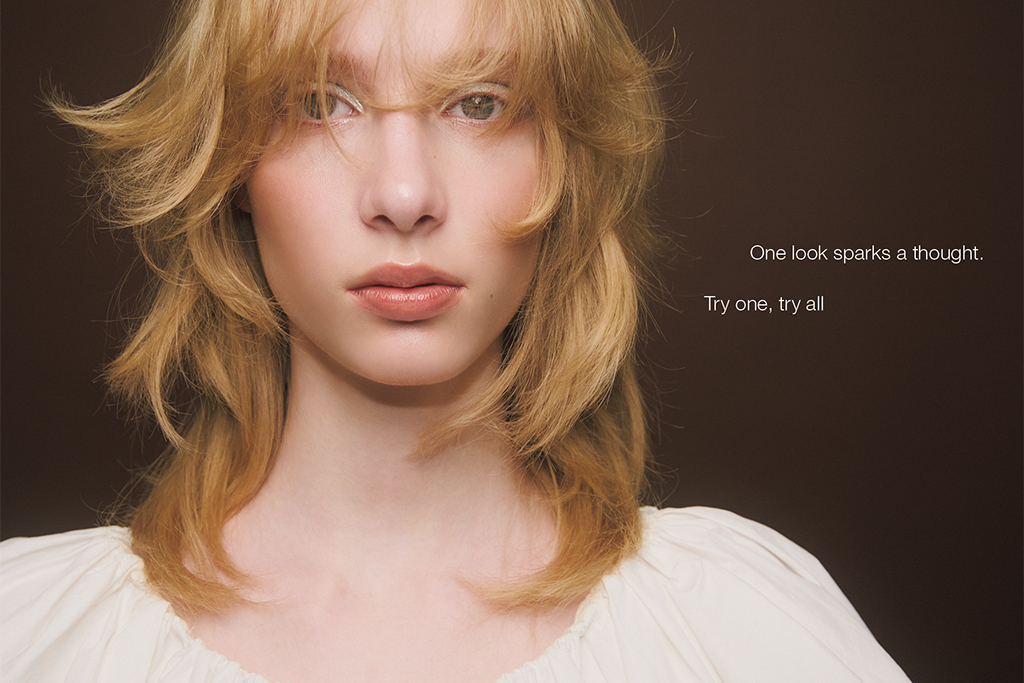 シンプルな黒の服もメイクで見違えを。ほのかに頬を染めるチークを主体に考えれば、服の持ち味を打ち消すことなく、新たなイメージを投影できる。服とコントラストをつけるために、選んだのはやわらかなペールピンク。頬全体に広げれば軽やかさが生まれて、黒の見え方に変化が。