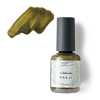 アップリフト ネイルカラー 603〈小高い丘〉(数量限定発売) 2,090円/OSAJI 蜜のようなモスグリーンの奥に、レッドやパープルの多色パールが潜む複雑な色み。光の当たり方で表情を変える指先は、リング以上の存在感。