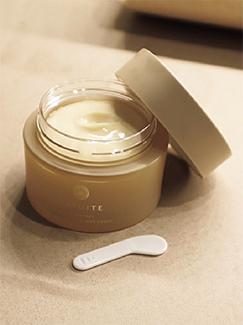 「こっくりと濃密なファチュイテのブライテスト エナジャイジングナイトクリーム。2日に1回、洗顔後にたっぷりと塗って湯舟に浸かればふんわりとしたツヤのある肌に。」(ちゃりこさん)