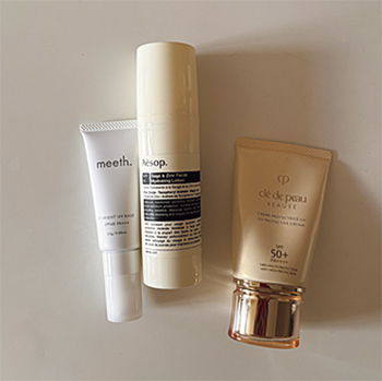 「1年中マストの日焼け止め。SPF値が高いものは仕事の日やお出かけ用、スキンケア要素が強く肌にやさしいものは家にこもる日用に。その日の予定に合わせて使い分けています。」(加藤さん)