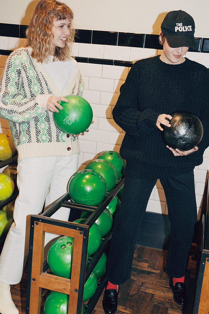 黒ストレートデニムパンツ 27,500円/カルバン・クライン ジーンズ(カルバン・クライン カスタマーサービス) 黒ワイドニット 25,300円/TODAYFUL(Life’s 代官山店) 黒キャップ 8,580円/BLUESCENTRIC(メイデン・カンパニー) ソックス 660円/靴下屋(タビオ) ローファー 17,930円/A de Vivre