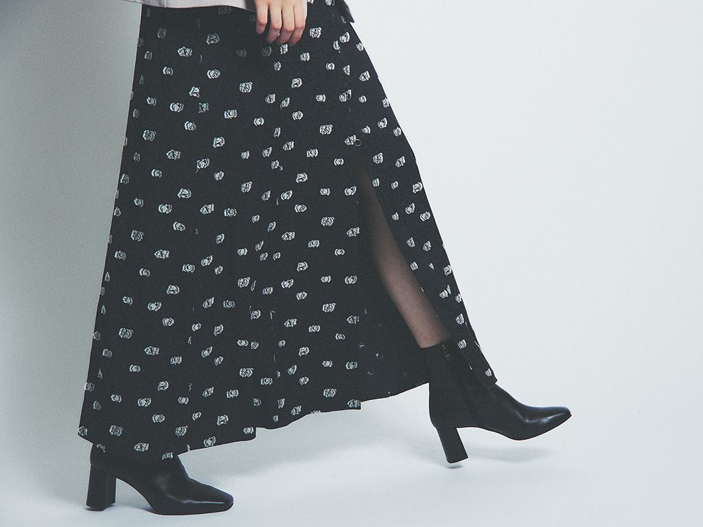 ブーツ (6) 28,600円/ダイアナ(ダイアナ 銀座本店) スカート 14,850円/ルージュ・ヴィフ アンナ(アバハウスインターナショナル オンラインストア) ジャケット 16,500円/LAGUNAMOON(LAGUNAMOON ルミネ新宿) 白シャツ 14,000円/バナナ・リパブリック