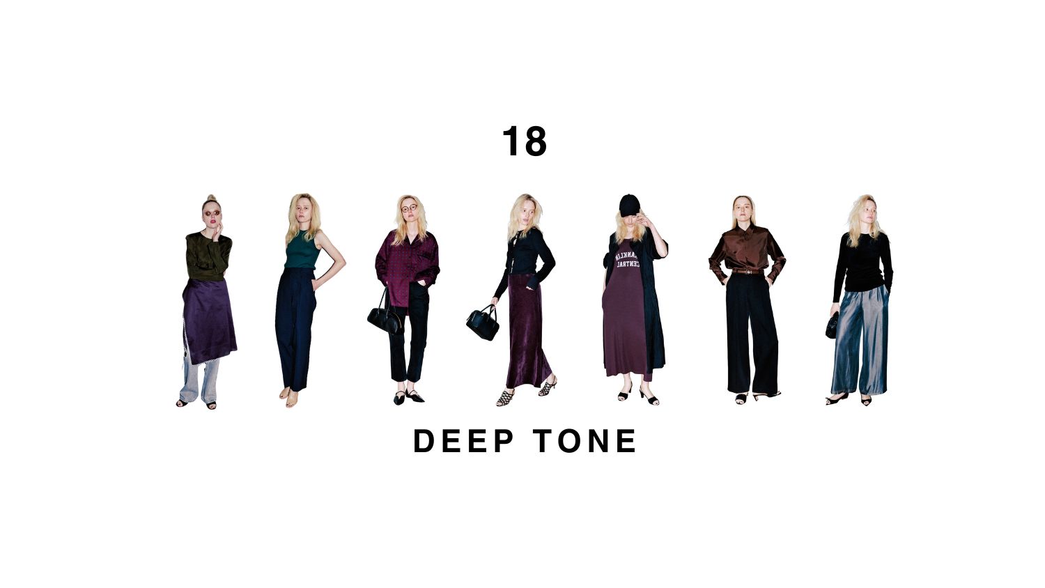 今、装いに重みを与えるダークトーンに着目。色そのものが重厚感をそなえているから、組み合わせることでよりいっそう大人の深みやクラシカルな趣を加えられる。そんな意外性を秘めた「暗色」を用いて、新たな配色パターンを拡大。
