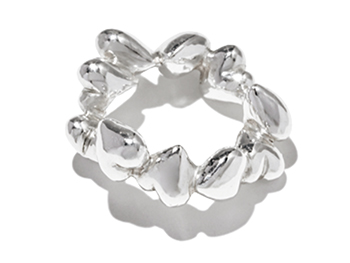 ハートリング 44,000円/GAGAN 甘くなりがちなハートモチーフも、有機的でモダンなフォルムなら大人にちょうどいい。シルバーの凜とした輝きが、辛口なムードも添えてくれる。シンプルなニットやシャツの袖口から覗かせるだけで、感度の高さを感じさせる手元に。