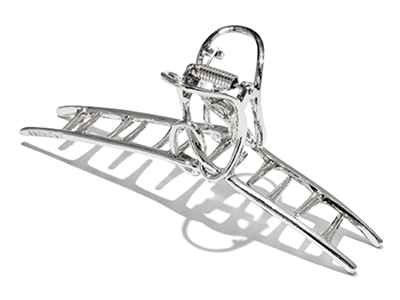 ヘアクリップ 1,760円/アネモネ(サンポークリエイト) 直線的でシャープなデザインが、ラフにまとめたヘアスタイルに知的なムードを添えてくれる。ホールド力もしっかり備えているから、デザイン性だけでなく実用性も十分。ジャケットスタイルなど、少し背筋を伸ばしたい日のよき相棒に。