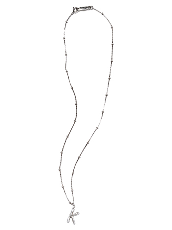 シルバーネックレス 23,100円/GAGAN まるで手描きしたような、どこか親しみを感じるイニシャルモチーフ。繊細なドットチェーンが、デコルテを華奢に見せてくれる。自分だけの特別なアルファベットは、まるでお守りのような存在に。ハートモチーフも選べるから、大切な人へのギフトにも最適。