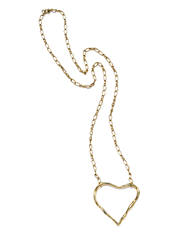 ゴールドネックレス 13,200円/IRIS47(フーブス) 手仕事の温もりを感じるような、少しラフな輪郭のハートモチーフ。決まりきった形でないからこそ、甘くなりすぎず、大人のデコルテにすっと馴染む。シンプルなTシャツやスエットに合わせるだけで、こなれた抜け感を演出してくれる頼れる一本。