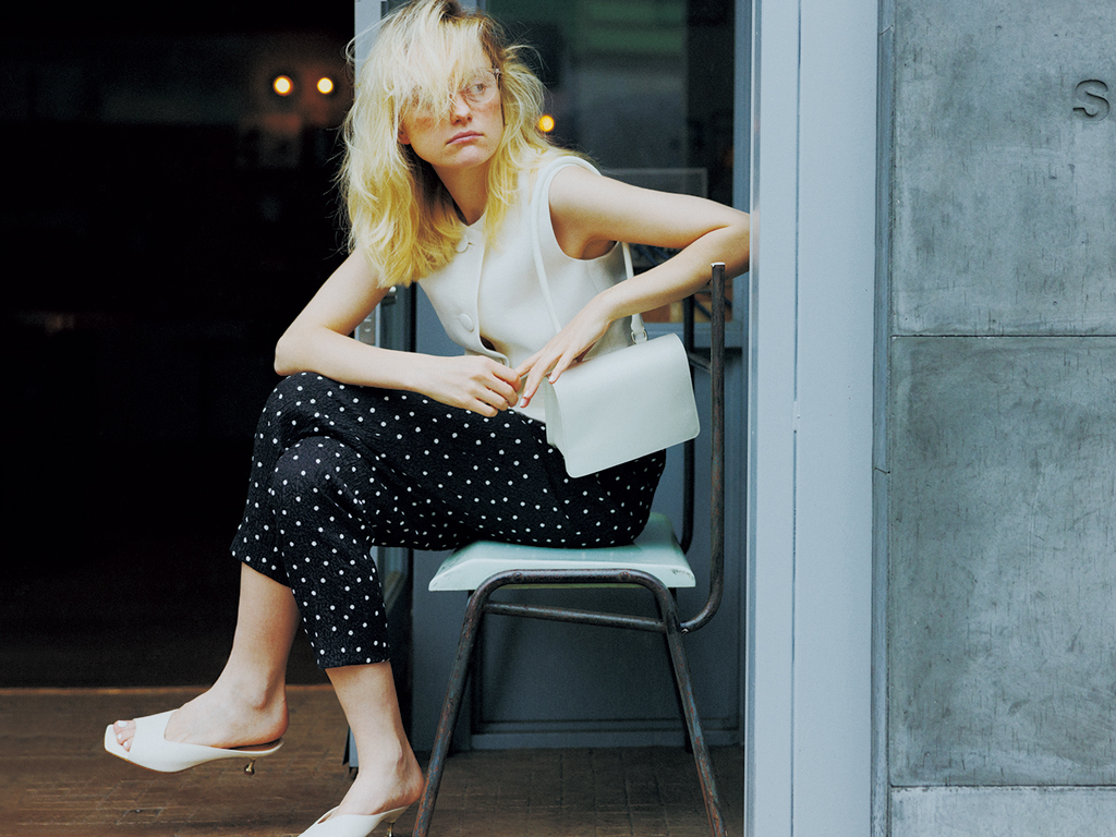 「着ていてラク」な白黒ワードローブを頼りに即座に着映えるアイテムを新たに追加。季節のムードを映し出す、少し派手なデザインも、モノトーンの範囲内だからこなしやすい。