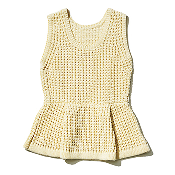白ペプラムニット 23,980円/アストラット(アストラット 新宿店) ウエストが引き締まったフォルムで脚長効果も見込める。品のいいクリーミィな白。