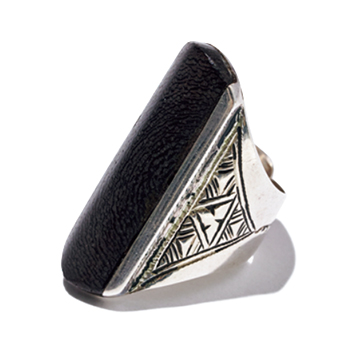 リング 13,200円/アダワットトゥアレグ(ザ エディット ストア) マットな黒と、手仕事のぬくもりを感じるシルバー。トライバルなモチーフが、指先にピリッとしたスパイスを効かせる。