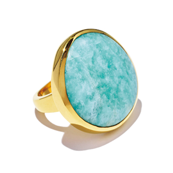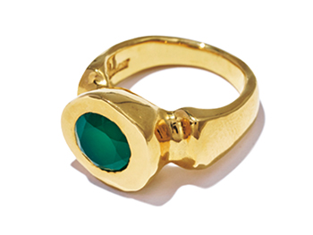 リング 56,100円/GAGAN ゴールドとグリーンオニキスの、どこか懐かしいカラーリング。ぽってりとしたフォルムが愛らしく、手元にレトロシックな魅力を宿して。